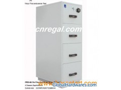 FRD680-40: 1hr Fire-Resistant Filing Cabinet 4 Drawers. Depth:680mm Outside size:(H)1598*(W)551*(D)680mm (H)62.91''*(W)21.69''*(D)26.77'' Packing size:(H)1718*(W)560*(D)730mm (H)67.64''*(W)22.05''*(D)28.74'' Inner file drawer size: (H)294*(W)388*(D)492mm (H)11.57''*(W)15.28''*(D)19.37'' Net weight: 320kg(704lbs) Gross weight:334kg(Carton box with plywood pallet)/735lbs Wheels on the base. Passed the Japanese "JIS-S 1037-1989 " Standard 60-minute fire test, the temperature inside the Paper Drawer is controlled under 115.5 Centigrade degree under 1000 degree. (Report No.: 2003-0567) Surface finished with powder coating. Steel thickness of fireproof cabinet : Body 50mm / Front Drawer 72 mm