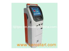 Touch screen features: Touch screen size 15" 17" 19" 20" touch screen, SAW or infared touch or resistive. SAW touch screen is water/dust/vandal proof, five year guaranteed, the same high quality as ELO touch screen. Grade A LCD monitor: Aspect ratio: 4: 3 Max resolution: 1280x1024 Brightness: 260CD/m2 Contrast: 450: 1 Powerful PC: Pentium 2.2 E2200 dual core processor, TCP/IP protocol 1GB RAM DDR2, 160GB SATA HD, ASUS motherboard, with DVD driver Multi-media system: Amplifier; Stereo Loudspeaker; Magnetic-proof, net card, sound card, integrated display card, Operation system: We can intall Windows XP OS, English Optinal accessories: 1. Bluetooth connection. 2. Printer: 80MM thermal printer with auto cutter or HP A4 size laser printer. 3. Card reader: IC card reader/magnetic card reader/RFID card reader, etc. 4. Metal keybaord with trackball, stainless steel, waterproof, encrypted 5. Cash acceptor: "Cashcode" branded, with RS232 interface, DC12V power, accepts multi-currency 6. Coin acceptor: Accepts multi-currency coins 7. Camera We can print your own logo on the kiosk Color: We can paint your own color, free of charge Cabinet: Steel cabinet sprayed metallic paint or plastic-spray, 2.0MM steel, moisture-proof, anti-rust, anti-acid, anti-dust Packing: Foam, carton, wooden case.