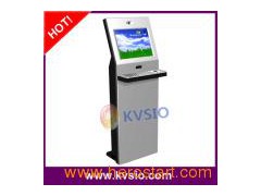 KVSIO Kiosk Features: . Innovative&smart design, elegant looking; Anti-corrosion power coating . Ergonomically and compact structure, user friendly, easy for maintenance . Anti-vandalism, water-proof, dust-proof, high safety performance . Rugged steel frame and long hours running, high precision, high stability&reliability . Cost-effective, customer orientated design, environment adaptable Functionalities Description: Basic functions: . Internet/information access . Account inquiry & transfer . Retail/ ordering/ payment . Ticketing/photo printing . Tel / transport card recharging . Photos, ring tones download . Product information release Optional functions: . Collection pay for utility bills, telephone/ broadband fees . Foreign currency exchange, bonds and funds transaction. . Invoices printing, card issuing, multi-media input/output . Personal authentication, attendance, change Configurations List: Basic Configurations: . Powerful Regular PC or Industrial PC . 15", 17", 19" 22"or above TFT LCD monitor . 15", 17", 19" 22" or above SAW/Infrared/Resistance/Capacity touch screen . Manual insert or motorized card reader for magnetic/IC cards reading . Rugged metal PC keyboard or Metal Encrypted pin pad/EPP . Thermal/DOT matrix Receipt Printer, 60/80/112mm paper width, with auto cutter . Multi-media Speakers . OS Window XP2003( test or licensed version) . All Steel made Enclosure(stainless steel, aluminum optional) . Power costing or automobile paint . LOGO&Color upon request Optional Configurations: Following components can be integrated into Kiosk upon specific application requirement. . Cash Acceptor . Cash Dispenser . Coin Acceptor . Coin Hopper . Check Reader . Passport Reader . Fingerprint Reader . Bar-code Scanner . Card printer . Card dispenser . A4 laser/thermal printer . Wireless connective (WiFi/GSM/GPRS) . UPS . Telephone . Camera . Motion Sensor . Air conditioner