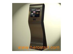 Touch screen features: Touch screen size 15" 17" 19" 20" touch screen, SAW or infared touch or resistive. SAW touch screen is water/dust/vandal proof, five year guaranteed, the same high quality as ELO touch screen. Grade A LCD monitor: Aspect ratio: 4: 3, Max resolution: 1280x1024 Brightness: 260CD/m2 Contrast: 450: 1 Powerful PC: Pentium 2.2 E2200 dual core processor, TCP/IP protocol 1GB RAM DDR2, 160GB SATA HD, ASUS motherboard, with "Pioneer" branded DVD driver Multi-media system: Amplifier; Stereo Loudspeaker; Magnetic-proof, net card, sound card, integrated display card, Operation system: We can intall Windows XP OS, English Optinal accessories: 1. Bluetooth connection. 2. Printer: Epson 80MM thermal printer with auto cutter or HP A4 size laser printer. 3. Card reader: IC card reader/magnetic card reader/RFID card reader, etc. 4. Metal keybaord with trackball, stainless steel, waterproof, encrypted 5. Cash acceptor: "Cashcode" branded, with RS232 interface, DC12V power, accepts multi-currency 6. Coin acceptor: Accepts multi-currency coins 7. Camera We can print your own logo on the kiosk Color: We can paint your own color, free of charge Cabinet: Steel cabinet sprayed metallic paint or plastic-spray, 2.0MM steel, moisture-proof, anti-rust, anti-acid, anti-dust Packing: Foam, carton, wooden case