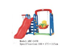 Plastic Slide & Swing Sets (ABC-145H) ShareGoogleRedditDeliciousStumbleUponBookmark / ShareXGoogleRedditDeliciousStumbleUponDigg Packing: Seaworthy Exporting Packing Model NO.: ABC-145H Productivity: 50 Sets Per Week HS Code: 95069900 Trademark: Aobote Origin: Wenzhou, China Player Age: >=12 Year Allowable Passenger: 5-10 Material: Plastic Export Markets: North America, South America, Eastern Europe, Southeast Asia, Africa, Oceania, Mid East, Eastern Asia, Western Europe Add to Basket Add to Product Favorites Product Description Small plastic slide ( kidgarden playground, kids slide, baby toys, kids playground equipment, plastic slide & swing sets, preschool equipment ) Easy assemble! ! Fully plastic toys suitable for kids under 7 years old. Usage: Kidgarden, home use, or other children care places, KFC,Name plastic slide & swing sets model ABC-145H sizes 180*175*115CM material Fully plastic payment T/T delivery 7-15 days upon receiving your deposit shipping prot Niongbo, zhejiang, China other notices your favor colors acceptable, easy assemble