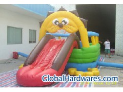 Material: 0.55mm PVC Tarpaulin from Plato Blower: CE/UL certificate Logo: Can be printed as required Size: Can be adjusted according to your requirement Tensile strength: Warp-2870.43N/50mm Weft-2279.06N/50mm Tear strength: Warp-527N Weft-323.8N Adhesion of coating strength: Warp-115N Weft-121.8N Accessories: CE/UL approved air pump, repair kit(material and glue) Useage: Rental business, parties, clubs, parks, outdoor entertainment, backyard fun and so on Auxiliary material: Good heavy-duty Velcro and nylon thread used Designs: Thousands of choice for your reference, our professional and experienced designer and technician team can satisfy your characteristic design requirement. Production machine: Advanced imported cutting machine/digital painting machine/hot air welder machine Workmanship: All seams are double stitched(triple to quadrupled stitched in sensitive parts) and strong reinforcement on all high stress points Our main products as following: Inflatable bouncer, inflatable obstacle, inflatable castle, inflatable slide, inflatable water games, inflatable tent, inflatable fun city, inflatable paintball bunker, inflatable coboms(slide&bouncer), inflatable Christmas products, inflatable advertisings, inflatable model, inflatable arch, zorb ball, fixed cartoon, mobile cartoon, air dancer, balloon bumper boat, water trampoline, water slide and so on. As one of the leading inflatable manufacturers in China, Top Inflatables Co., Ltd. is an enterprise integrating the research and development, industry and trading. Our company specializes in designing, manufacturing and selling all kinds of inflatable products. We have 10 years design and production experience on the inflatable products. Advanced imported cutting machine/digital painting machine/hot air welder machine used to ensure our products with excellent quality and competitive price. Right now hundreds of models available, we can show you lots of different designs. If they don't meet your request, JUST send us pics/designs you want, we have the resourceful R&D Department to make your idea or draft into real inflatables you like. Please feel free to let me know if you need more information about our inflatable products or our company. Welcome to talking on the Trade Manager or MSN or any you like at any time.