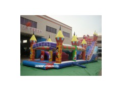 5*14*6.5m 1. Function: With huge slides, spacious playing area and lots of obstacles. Plays can enjoy excitement with the funcity as long as they want. 2. Stitching: Double stitching & quadruple stitching. 3. Material: Strong material of 0.55mm 1000D PVC tarpaulin. 4. Printing: Digital print, silk print, or hand painting 5. Blower: CE (220V, 50Hz) or UL (110V, 60Hz) for different area using, plug can also be customized. 6. Accessories: Repair kit (2PCS PVC tarpaulin material for each color which is used for inflatables, 1PC glue). Ground sheet to be ordered (strip material or PVC tarpaulin material) 7. Main and preponderant inflatables in our production line. Wide range of choices to set up the kids kingdom with fun, like bouncers, ball pools, castles, combos, slides, fun cities, obstacles, tunnels, and various inflatables of sports games, such as football, basketball, bungee, climbing games, and so on, also the inflatables games with multifunction. Kids will enjoy their funtime joyfully and safely. Add to Basket