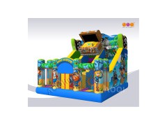 Inflatable slide: AQ0141-3 Pirate Style Material is best 0.55 PVC tarpaulin SGS certificated, perfect forinflatables. With the hottest and newest pirate style which will ensure kids all enjoy a good time inside. This sharp colour style is good for family party too.