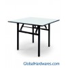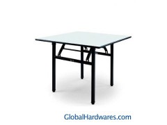 BANQUET FOLDABLE SQUARE TABLE Overall:W760 x L760 x H760MM Material: Steel Frame 30*30*1.2mm/PVC or Laminated Wood Table Top 20mm Packing: 2pc/ ctn Carton:770*770*250mm/0.15cbm/GW: 32 KG