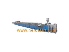 YF the series PVC different molding production line mainly uses in thePVC windows and doors molding, the extra wide shutter, the window board, the porous threading tube (four, six, the seven orifices, nine and so on) squeezing out. This production line may act according to the different molding cross section and the mold, selects thedifferentspecification parallel (cone-shape) the double screw rod extruding machine, and disposes the corresponding vacuum to finalize Taiwan, the tractor, the cutter, turns the material platform and so on supporting Facility. The main engine squeezes out the quantity to be possible between each hour 60 kilograms to 700 kilograms optional. The tractor uses Our company unique fluctuation technology, the work is steady, the reliability is good, the force of traction is big. The vacuum stereotypia uses enlarges the vortex cooling system specially, is advantageous for cooling to finalize, meets the needs which squeezes out high speed. The cutter traveling speed and the pulling speed maintain synchronizations, the complete movement uses imports the PLC computer control, the rational design, the movement is stable, but automatic fixed-length cutting, and provides the dust reclamation plant Add to Basket Other products from