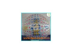 TPU inflatable roller ball, zorb, inflatable zorb ball 1) Zorb ball Material: 0.7mm TPU 2) Size: Small 1.8m one is for kids only, the big one in 3m diameter is good for both the kids and adults. 3) Suitable blower certificated by CE/UL are presented 4) Packing: Carton and high-strength PVC tarpaulin 5) Zorb ball MOQ: 1PCS 6) Methods of shipping: By sea or air 7) Zorb ball is suitable for family, backyard, school, and playing center 8) We also can produce it according to your design, size and color.