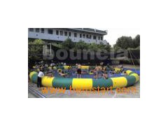 This outdoor inflatable pool can be used for swimming, battery boat, water walking ball and other water games. Please see below table for details of this inflatable pool. Material: 0.6mm or 0.9mm durable commercial grade PVC tarpaulin Inflated product dimensions: 12m diameter*0.65mH (39.4ft diameter*2.1ftH) Inner area: 10.7m diameter (35ft diameter) Available colors: white, blue, red, orange, yellow, grey ect. Other available inflated dimensions: 10m-15m diameter, 0.65mH Price term: EXW, FOB, CFR are optional Leadtime: 5-7 days after receipt of 45% deposit Shipment term: by sea, by air, by express are optional Payment term: T/T to our company account or Western union(45% deposit, balance before shipment) MOQ: 1PC Accessories: fixing kit(fixing material and glue), CE approved air pump and durable vinyl carriage bag