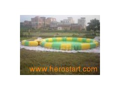 This inflatable pond can be used for battery boat, water walking ball, swimming ect. Please see below tables for details of this inflatable pond. Material: 0.9mm PVC tarpaulin Inflated product dimensions: pool: 8m diameter*0.65mH; pool platform: 3mL*2.5mW*0.65mH (9.8ftL*8.2ftW*2.1ftH) Package weight: pool: 110kgs; pool platform: 26kg (57lbs) Package dimensions: pool: 95cm*65cm*60cm(37" *26" *24" ); pool platform: 84cm*53cm*27cm (33" *21" *11" ) Available colors: white, blue, red, orange, yellow, grey ect. Price term: EXW, FOB, CFR are optional Shipment term: by sea, by air, by express are optional Free of charge accessories: fixing kit(fixing material and glue) and durable vinyl carriage bag Chargeable accessories: CE approved air pump