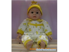 16" Vinyl Baby Doll It's one of the popular size of vinyl baby doll with stuffed body. Non-phthalate vinyl material are available. Meets toy safty of EN71-1/2/3 and ASTM. Suitable for all ages as toys or collection. Face and dress are optional. More styles are available. Color window box, open display box and customized gift box as packaging are optional.