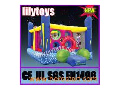 A) 10 years experience B) CE/UL, lead free, OEM Accepted C) Inflatable castle, inflatable kids bounce, inflatable moon jump. Item name Inflatable castle / inflatable bounce Brand Lilytoys size As customized color As customized material 0.55 mm PVC tarpaulin / plato TM Moq 1PCS packing PVC bags for items, carton for blowers Produce Time 10- 28working days Shipping way By sea /by air/by DHL weight Accord the actual weight warranty 3-5years blower CE/UL/CCC certificate EN71/SGS/CE/UL/ Lead free printing Logo/ Banner/web site /phone/company name and so on OEM yes Quality control 1. Double stitching throughout the unit with triple stitching 2. Quadruple stitching in key areas inside the base of the unit 3. Extra webbing reinforced strip on all the stress points and interior panels Come with 1.3-5years warranty 2. blower(if customer want to buy the blower) 3. repair kits 4. Safe rule 5. Ramp 6. Banner with your phone No/company name 7. Spikes 8. Card holder(if you need let me knows) 9. Emergency exit for faster deflation process ramp