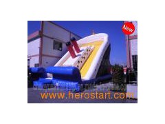 Titanic Inflatable Slide/SGS Inflatable Slides(CYSL-10): Size: 15L*7W*10H meter, with a large size for this Titanic inflatable slide, Unique design, great fun and high quality. It's the best choice for kids or adult who enjoy exciting! More details for this Titanic Inflatable Slide/SGS Inflatable Slides(CYSL-10) please see below: 1. Material: High durability fire-retardant 18 oz (0.55 to 0.60mm) PVC tarpaulin, which has 3 LAYERS, two coated sides with a strong net inside, the material meets EN71-2, 3, EN14960, SGS certificate. 2. Suitable blower with CE / UL can be equipped for this inflatable slide according to your own need. 3. Packing: Packed by PVC tarpaulin bag for the inflatable slide, bag which is durable and waterproof, blower is packed by carton. 4. Technology: The sewing technic is from 5-6 stitches per inch, Entrance step&Door Step Netting on all the bouncers & combo games, Safety rules for all inflatable games. Include 2 Anchor points ( D-ring) on each of the back corners of all inflatable games. 5. Shipping method: By sea, by air or express are at your option. 6. Payment term: T/T, Western Union 7. Customized design is welcome, we can produce different inflatable slides, inflatable toys according to your own design, also can print your own logo on the inflatables. If you have any other question about inflatable products, please do not hesitate to contact us or visit our website to get more information.