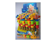 Specification:28grams jelly bean filled in a plastic tube, a plastic clown fish or sea horse connected on top of the tube.The plastic clown fish or sea horse can made twitter and the clown fish can quiver its body, the sea horse can quiver its mouth and eyes while pushing the button at it's front continuously.It's non battery operated toy.9PCS of toy clown fish and 9PCS of toy sea horse stood in an attractive display box with shrink wrapped and 8 display boxes in one carton. We are able to design the display boxes according to buyer's requirement as well as show buyer's logo on it, we can also put a sticker or hang a hang tag on each toy if required by buyer. Product's Name:Noisy Clown Fish & Sea Horse Toy Candy Item No.:HF110702 Ingredients:Sugar, Glucose Syrup, Gelatin, Citric Acid, Artificial Flavor & Colors(E102, E110, E129, E133). Packing:28gX18pcsX8boxes/CTN Dimension Of Toy:Clown fish:7.6X3.5X24.5cm, sea horse:7.3X3.2X24.5cm We are able to use natural colors to make candy if required by buyer, we also can provide EN71 certificate if required by buyer.