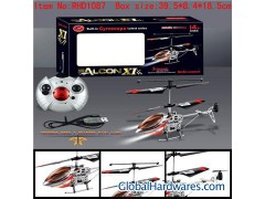 Item: RHD1087 Description: gyro Falcon 11 R/C Helicopter plane Size: 19.1 X 17.3 X 11.1 CM Box Size: 39.5 X 8.4 X 18.5 CM Qty: 36 PCS/2 BOX Package: windowbox CTN Size: 80 X 42 X 81 CM G.W./N.W.: 25/20 KG Remark: Version:Gyroscope upgrade Gift:USB2.0 charger data line R/C control:radio control Channel:3.5channel[up/down,left/right rotation、forward/back] Battery: 3.7 v 180mAh lithium Battery USB Charging time: about 50 minutes Flying time: 5 to 7 minutes Flying distance: about 10m with USB Certificate:6P.EN71,ASTM.HR4040,62115 CE1313