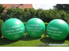 Our large helium balls are the ultimate in small and large business advertising. Our vinyl balls are manufactured from polyvinylchloride (PVC) fabric and is manufactured with a UV inhibitor in the material to protect it from fading also the coloring is throughout the material and not a coating. This material is ideal for outdoor use and is much stronger and better than the 3.5 mil or 6 mil urethane material that other companies use (a garbage bag is about 3 mil ). By adding your logo or message you can have your name in the sky! These balloons come as a complete package and include: 7 or 13 foot round PVC balloon Available in white, red, orange, yellow, blue, clear, black, silver, gold & green (custom colors available at additional charge) Harness strings attached to ball and 10 foot long tether line 5 foot inflation hose to transfer helium from tank to ball These balloons are designed to be reused over and over again We would be happy to meet your specific project.