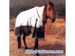 Product Specifications: This product is a blanket to be draped around horses that live in cold conditions. Its snow white colour scheme with black trim allows the wearer to be impressively appealing. This blanket is fixed onto the horses back and draped around his body via a twin girth.