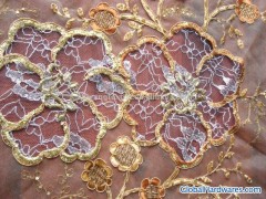 Metallic tulle embroidery with spangle and accessory and Lace applique:1) More than 1 color tone embroidery2) Hand-made craftworkInner packing:Roll on strong tube or cardboard then polybag with labelOuter packing:Strong carton