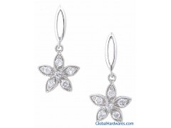 Add an elegant accent to any outfit with pretty floral drop earringsJewelry is crafted of shiny sterling silverEarrings hold a dainty flower dangling from a slender stemSparkling round cubic zirconia and milligrain beading decorate flowersPost earring secure with butterfly backsEarrings measure 25.8 mm L x 12.6 mm W