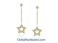 Drop earrings feature sparkling cubic zirconia stones set in stars Jewelry is crafted of 18-karat yellow gold over sterling silver Dangling earrings are a lovely and feminine addition to your jewelry collection One 2.5 mm ball-style CZ stone graces the post of these earrings. Traditional posts closed with butterfly backs Earring measures 45 mm long x 15 mm wide