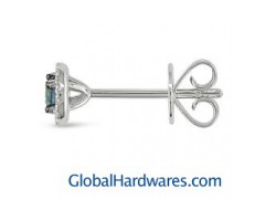 Featuring treated blue diamond centers, these 10-karat white gold earrings are framed in white diamonds. The earrings are secured with butterfly backs. Blue Diamonds Diamonds: Two Diamond cut: Round Diamond weight: 1/5 carat Color: Blue Clarity: I1-I2 Setting: Prong White Diamonds Diamonds: 28 Diamond cut: Round Diamond weight: 1/10 carat Color: H-I Clarity: I2-I3 Setting: Prong Metal information and dimensions Metal: 10k white gold Finish: High polish Style: Stud Clasp: Butterfly Metal weight: 0.84 grams Earring dimensions: 5 mm wide x 5 mm long x 3.5 mm deep