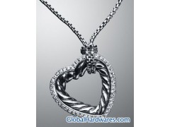David Yurman Necklace,Large Pave L Cable Heart Necklace