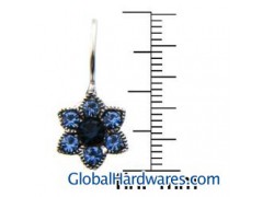 This beautiful pair of flower earrings feature inlaid blue cubic zirconias. These earrings are crafted of polished sterling silver. Style: DangleGemstone colors: BlueGemstone shapes: Round 12 inlaid round-cut blue cubic zirconias each measure 3 mmTwo inlaid round-cut blue cubic zirconias each measure 4 mmMetal: Sterling silver Finish: High polishClasp: HooksMetal weight: 1.9 gramsEarring dimensions: 11.22 mm wide x 23.68 mm long