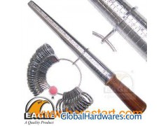 Presenting a matched set of Ring Stick and Ring Sizers (Finger Size Gauges) made in India. The Finger Gauges are made of high quality stainless steel and each marked with 1 to 36 Universal Sizes on one side and 41 to 76 circumference on the other. This Ring Sizers Set includes perfectly matching Aluminum Ring Stick with the same measurements marked as the Ring Sizers. The Aluminum Ring Mandrel has well finished wooden handle for comfortable grip. We manufacture this set altogether in order to assure perfect matching of Finger Gauges on Ring Stick. We are also manufacturer of perfectly matched Ring Sizers and Ring Stick Set with marking of US Sizes 1 to 15 and British Sizes A to Z & 1 to 6