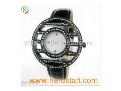 Product Description Fashion glass leather watch Material: Zinc alloy case with diamond, leather band Movement: Japan quartz movement Function: Water-resistant Packing: Each piece/bubble bag, 10 pieces bags/white box, 10 boxes/39 x 28 x 25cm carton Weight: 9kg Customized packing ways are welcome MOQ: 1000PCS Alloy leather watch Features: Customized logos on dial or case back are welcome Customized strap colors are accepted Various designs are available RoHS- or CE-certified.