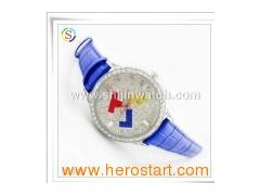 Product Description Fashion diamond leather watch Material: Zinc alloy case with diamond, leather band Movement: Japan quartz movement Function: Water-resistant Packing: Each piece/bubble bag, 10 pieces bags/white box, 10 boxes/39 x 28 x 25cm carton Weight: 9kg Customized packing ways are welcome MOQ: 1000PCS Alloy leather watch Features: Customized logos on dial or case back are welcome Customized strap colors are accepted Various designs are available RoHS- or CE-certified