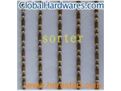 Packing: Plastic Bag With Wooden Case Standard: ISO9001 Productivity: 5000meters/Week Shipment Terms: by Express,by Sea and by Air Payment Terms: T/T,Western Union Minimum Order: 1000 meters HS Code: 83089000 Trademark: sorter Origin: China Texture: Unique Metallic Luster Export Markets: North America, South America, Eastern Europe, Southeast Asia, Africa, Oceania, Mid East, Eastern Asia, Western Europe Item: Metal bead curtain Material: Iron nickle plasted, brass, stainless steel etc. Size: 2.4mm, 2mm, 4mm, 4.5mm, 6mm, 8mm, 10mm, 12mm Main pattern: SN4, SQ4, SQ6, SN8, SQ10, SCP8, SS6, SCH8, SH8etc. With its vercatility, unique style, variety of colour, design, size material for chosen, durability, flexbility, metal bead curtain is a new design fot today's Modern decoration style. It works well as room divider, window treatment, backout, door treatment, drapery, light lamp, interior and exterior decoration. We can supply free sample to our all clients for test. pattern mateiral diameter colour MOQ SN4 iron nickled 4mm silver 1000meters SN6 iron nickled 6mm silver 1000meters SN8 iron nickled 8mm silver 1000meters SN610 iron nickled 6mm golden 1000 meters SQ4 iron nickled 4mm gunmetal 1000meters SQ6 iron nickled 6mm gunmetal 1000meters SQ8 iron nickled 8mm gunmetal 1000meters SQ12 iron nickled 12mm gunmetal 1000meters SS8 stainless steel 8mm stainless steel 1000meters SCP8 brass 8mm antique brass 1000meters SH8 iron nickled 8mm black 1000meters