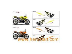 Features: product name:Motor Bike Sticker (HX-MD-01) 1) High gloss, vivid rich colors 2) Extremely durable surface 3) Permanent acrylic pressure-sensitive adhesive 4) Made from OEM certified, automotive graphics vinyl 5) Conforms to irregular surface 6) Stands up against water, dirt, grease, salt, mild acids and oil 7) Lasts years on exterior of vehicle, excellent UV durability 8) Easy and fun to apply Inner packing: 100pcs/polybag Outer packing: 500pcs/ctn