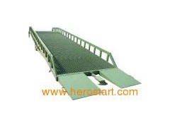 Specifications: 1. The machine has been tested and debugged, and all the parameters has been reached on the designed requirements. The hydaulic system does not need adjusting. 2. Yard ramp's hydraulic system and tyres should be examined carefully before the working to make sure that without the leak of oil and the weak pressure of tyres. 3. The yard ramp should be landed onto the hard ground and to fasten the fixing chains to the truck. 4. The yard ramp should be operated without load for 1-3time, and then to do loaded work. Hydraulic system: 1. With handle pump, screw the return valve clockwise. 2. Move the handle stick, to lift the ramp slowly. 3. When the return valve is screwed counterclockwise, the hydraulic oil will go back, and the ramp will fall down on its own weight. Operation: 1. Fasten the return Valve and press the handl to move the ramp over the truck soleplate. Unfold the landing legs to working height. 2. Drive the car under the plate. 3. Release the return valve, and the ramp will fall down onto the afterbody of the truck, then fasten the ramp and the truck with the chain. The hyraulic system and the tyres of ramp do not carry the weight. 4. Operating starts. 5. When the operation finishes, untie the fixing chains. Lifting the ramp by the handle stick, and then drive out the truck. 6. Uplifting the afterbody of the ramp to move around hang on the truck. Safe operation: 1. While the ramp is under using, the table should be kept in level and be stable. Move speed: 3km/h 2. While the ramp falls down, the person climbing is forbidden. 3. Overloading is forbidden. 4. Keeping the hydraulic oil clean, without the mixture of water or other impurity. The oil changing is normally half year. The model of oil is N32# in winter, and N46# in summer. 5. When the emergency occurs, the operation must be stopped immediately to repair troubles. Note: The tyre of yard ramp is only used to move the machine, after you land the legs, let out the hydraulic oil of the cylinders, or the heavy loading will break the cylinders and the tyres. For the tyre and cylinders of ramp don't carry the load. The tyre is for move, and the cylinder is used for change the working height.