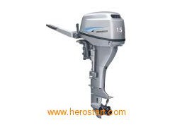 2 or 4-stroke outboard motor/engine(SF SERIES) Power from 2HP to 30HP Specification of model SF-15BMS as below: H. P: 15HP Overall length(mm/in): 873(34.4) Overall width (mm/in): 330(13.0) Overall height(mm/in): 1167(45.9) Transom height (mm/in): 1080(42.5) Engine type: 4 stroke Displacement (cm3): 323 Maximum fuel waste(L/H): 5.3 Bor x stroke(mm): 59*59 Maximum output(Kw)(HP): 11(15)@5000 Full throttle operating range: 4500-5500 Starting system: Manual start Idling speed(Neutral): 900-1000 Steering: Manual tilt Ignition system: CDI Control system: Tiller control Gear positions: F-N-R Propeller options: 3*9 1/4"*11" External fuel tank(L): 24 Weight(Kg): 47 Gear oil capacity (cm3): 1 *Propeller choice will vary by boat size and application *B=Back control F=Front control M=Manual start W=Electrical start S=Short shaft L=Long shaft