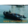 Fabric Type: Hypalon Standard features include: Roll-Up Aluminum Slatted Floor Carry Bag Full-Length rubbing strake 2 Over-Pressure Relief Valves 2 Removable/Multi-Position Storage Bags 2 Paddles and interior paddle retainers Lifelines 5 Carry Handles Seat abrasion patches to protect the tubes 5 Tie-Down Rings Repair Kit Owner's Manual High-Volume Footpump Protective Motor Clamp Plate Self bailer Valve in transom