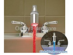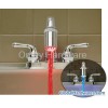 ABS body with chrome plated, generated by button batteries, batteries included Water pressure-activated light source Includes adaptors to fit most standard faucets Add a brilliant light stream to your faucet, specially funny for kids' bathroom Color : Red color when water temperature above 35℃ Blue color when water temperature below 35℃ Pack: each piece packed in clam shell,100pcs/ctn Life Guarantee : 6 months Certificate: CE & ROHS