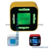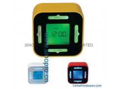 Rotating calendar clock FEATURE: 1.Rotating the clock in 4 directions, it will display 4 functions of time, alarm, countdown timer and temperature. 2.2 colors, blue and green; 3.LCD displays time, day, month, and date; 4.Thermometer in C/F format;