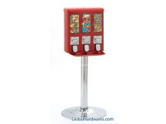 .Machine size: 49mm*41mm*28mm; Packing size: 49*38*50cm; N.W/G.W: 26Kgs/28Kgs 2.Materials: PC windows, heavy duty steel construction, Chrome plating steel stand 3.Color Available : Red, Black, White, Yellow (Or customized) 4.Coins: any coins within 26.5mm*3mm 5.Wheels for choice: (1) Adjustable wheel for bulk candy