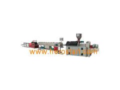 The main extruder of this line is LSZ51/105 or LSZ65/132 twin screw conical extruder, installed with single controlled double pipe spraying water vacuum calibrating tank, in the process of production, the two pipes are controlled at the same time, the hauling machine and cutting machine for double pipes are operated easily to increase the production capacity. Main technical data: Model/Spec. Diameter range (mm) Extruder model Line speed (m/min) Max. Capacity (kg/h) Installed power (KW) LSZS 20-63 LSZ51/105 LSZ65/132 1-10 100-220 40-60
