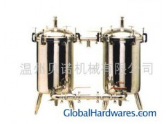 Double barrel filter is made of fine stainless steel SUS304. It is consisted of two barrels. Inside polishing and outside polishing is 0.4μm,on the top configured pressure gauge and outlet valve can catch impurities of the Chinese herbal medicine liquor, oral liquid etc. the two filters alternatively use. It can change filter net without stop machine operation and make long and continual production.