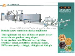 Snacks food processing line can be directly extruded from the extruder, dryer and seasoner, we can produce all kinds of snacks and different shapes by adjusting the dies from extruder.