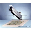 This small manual sample cutter can be placed onto any working table . It cuts all size s from 1 x 1 cm to 45 x 45 cm as square or rectangle . A laserlightline shows the user, where the cut will be done . This helps to get the right cut position for printed fabric. The cutter can be equipped with serrated