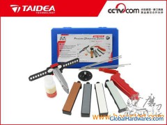 The Precision sharpening system has diamond stones of variable grits for different sharpening demand. Applicable scopeWidely used for outdoor knives, folded knives, fishing knives, hooks, scissors etc.Product Features1. Diamond stones of variable grits for different sharpening demand.2. Multiple selectable sharpening angles meet different knives requirements.3. Scientifically formulated honing oil for better sharpening performance.4. Ergonomic sharpening handle for safe and comfortable.5. Custom plastic box for easy storage and carrying.Assembly InstructionsA. Open the angle setters and secure them by slide locks as shown in the picture. Please make sure the two angle setters are in a straight line and are vertical with the angle clamp.B. Loosen the front screw of knife clamp to accommodate the thickness of blade. Attach the knife clamp to back or spine of knife blade at the center of knife blade. Tighten front screw and the black thumb screw to hold knife securely.C. Screw the alignment rod into the hole of the stone holder. Tighten the round mount at the bottom of the handle. Insert the handle into the hole of the knife clamp then put the sharpener on a stable surface.Sharpening InstructionsA. Drop some honing oil on the stone. Place the alignment rod in the hole of the angle setter for your desired sharpening angle.B. One hand holds the handle, the other holds the stone holder. Beginning with the coarse stone and then to the fine. Using slight and constant pressure, sharpen the knife from its heel to its point. Repeat 3-5 times.C. When one blade is sharp, flip over the knife clamp and repeat the steps till the knife is sharp enough.Cautions1.Pleasebeextremelyattentionduringsharpeningtopreventanyinjuries.2. Please put the knife sharpener and knife beyond the reach of children to avoid any accidents.