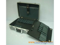 Aluminum tool case Size: 450*360*160MM 1. Material: ABS extrude panel with aluminum frame 2. Inside with attached bag and two tool palettes. 3. With stronger metal handle for heavy duty handcarry.
