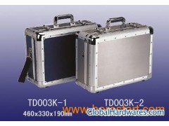 Aluminum tool case Size: 460*330*190MM 1. Material: Hairline laminated board panel with aluminum frame 2. Inside with tool palette and attached bag 3. With two locks for safty purpose. 4. With portable handle for easy handcarry. 5. With shoulder strap.