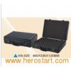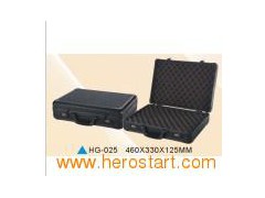 Modle number: HG-025 Name: Gun case Specification: 460*330*125mm Elucidation: Half moon aluminum frame with diamond panels EVA lining and cutting foam in the bottom Two lock with key and a silver color handle Egg shape sponge in the lid.
