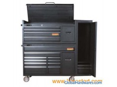 Heavy duty side handles Carry tray Powder coating finish Internal locking system for extra security 2 millimeter prtective drawer liner. Ball bearing slide TBT8005-X Size: 1434x560x645mm With 5 drawers TBR8011-X Size with casters: 1434x560x1075mm With 11 drawers TBS8002-X(side locker) Size: 423x560x1532mm With 2 drawers