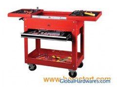 Knock down structure for easy transportation Gas spring lid stay keep cover from accidently falling Power coating finish Multi holes design for different size tools Two swivel with brake pin bearing 5"x2" casters for longer use Size: 705x370x710mm With 2 drawers N. W. 27.5kg G. W. 30.5kg Qty/20'cy: 175PCS