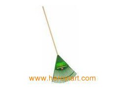 Item No.: 26SH Name: Rake(26 Tines) Material: PP+WOOD Rake: W63*H53.5cm Wood: ø 2.35*L120cm The 24" polyethylene head allows for medium capacity leaf raking and general clean-up and includes a 48" wood handle.