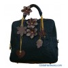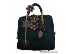 material: top genuine cow leathersome leather flowers in frontspecial shape leather decoration hang by metal chain zipper closure with lockregular pocket and zipper pocket insidecolors: black, gray, dark.coffeeMOQ: 30pcs/coldelivery time: within 20 days