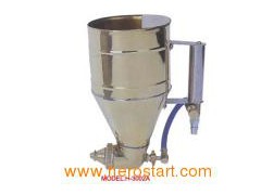 MODEL: H-3002A AIR PRESSURE: 50psi(3.5kg/cm2) FEED TYPE: Gravity CAPACITY OF CUP: Brass 4000ml NOZZLE SIZE: 4mm, 6mm, 8mm AIR INLET: 1/4"